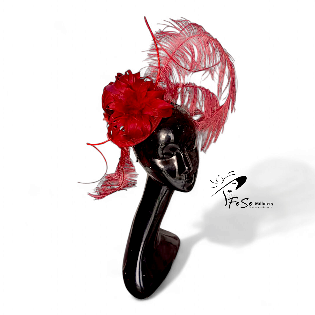 Add a touch of sophistication and whimpsy to you outfit with this stunning ostrich feather fascinator. expertly crafted with ostrich feathers, this headpiece is perfect for making a statement at weddings, formal events, or horse racing gatherings.